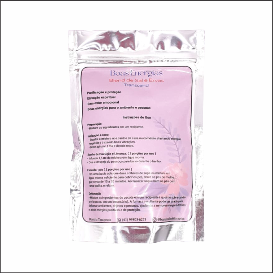 Com Banho e escalda-pé de sal e ervas Transcender, você estará criando um ambiente de proteção, elevação e bem-estar emocional, onde as energias fluirão de forma mais leve, pura e positiva.